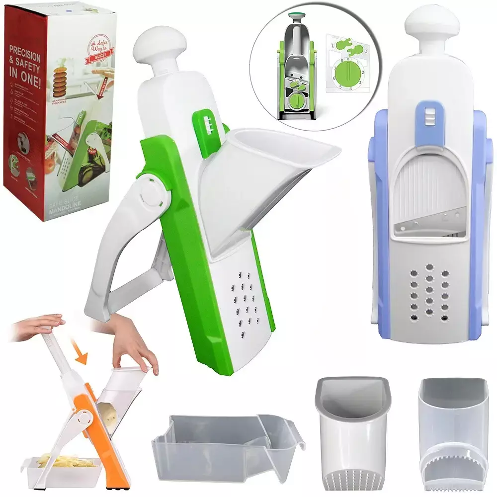 Totalmente seguro porque todas as lâminas estão cobertas. Você pode fazer todos os cortes que um mandolim normal faria, mas de uma forma mais segura!