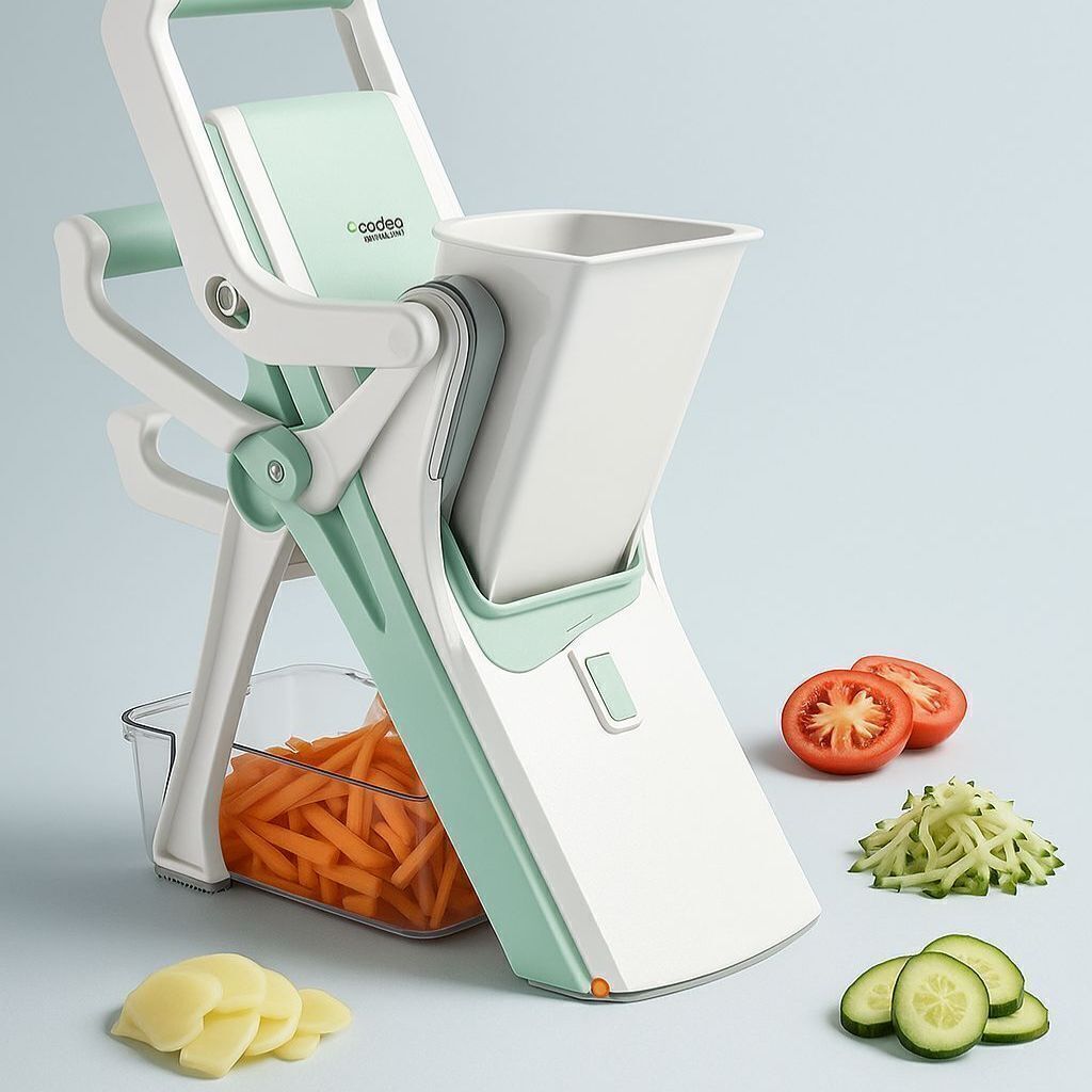 O Cortador e Fatiador é uma bomba de mola de alta eficiência que faz mais de 30 tipos de cortes perfeitos.
