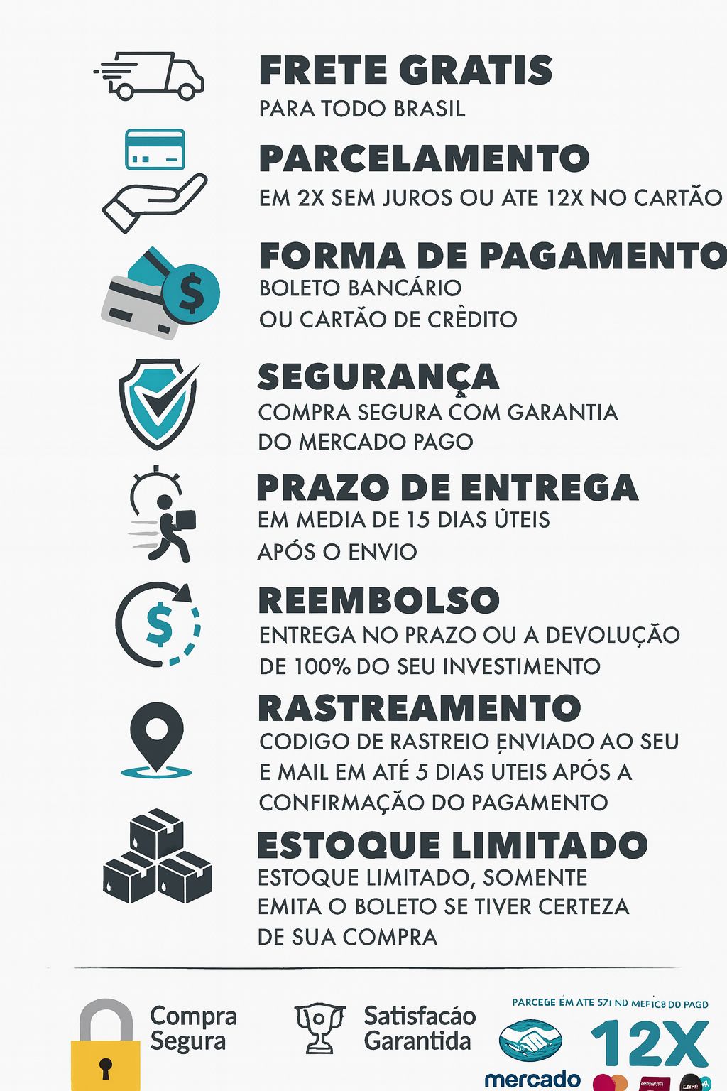 Sua compra conosco é totalmente segura e com Garantia de 100% Satisfação. Não Gostou? Asseguramos sua troca ou devolução em até 7 dias, de acordo com o Código de Defesa do Consumidor