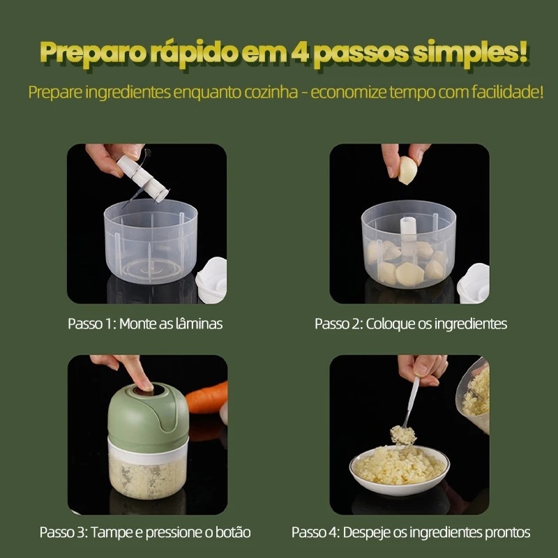 Prepare temperos, pastas, molhos e pequenas porções com apenas um toque. Tudo rápido, simples e do jeito que facilita sua rotina na cozinha.